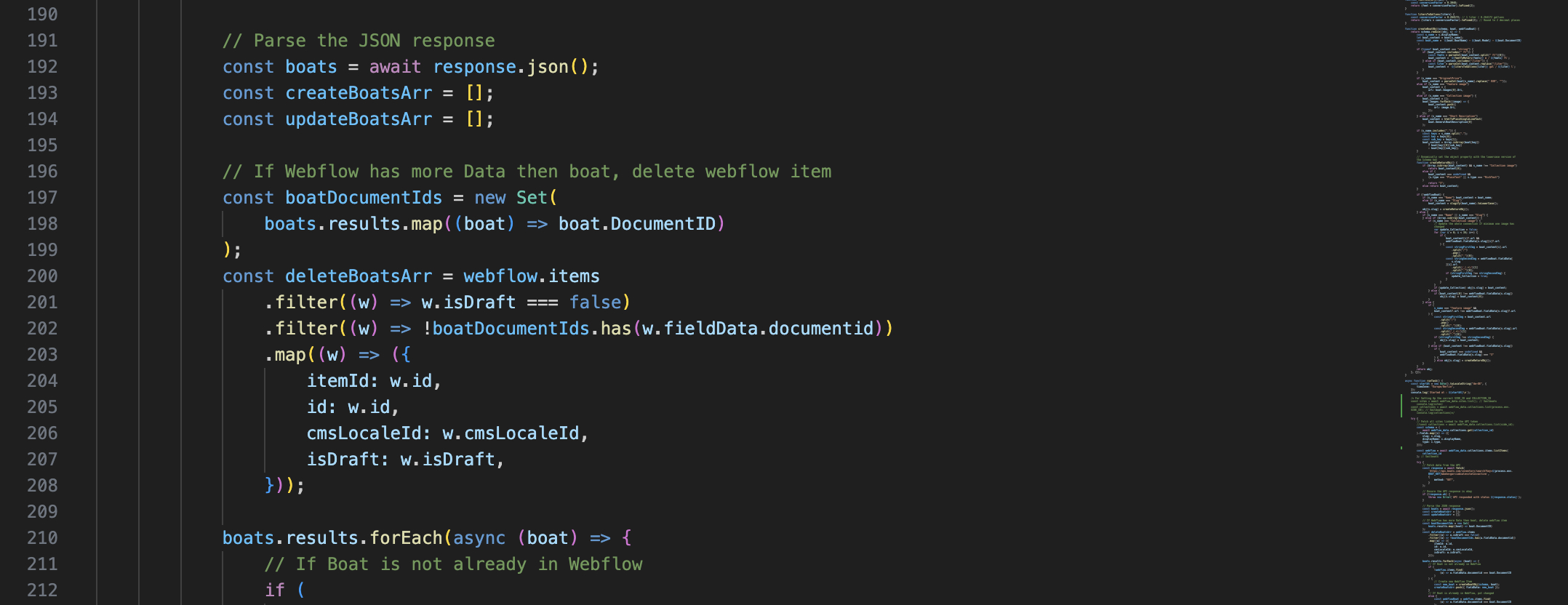 Für Garcia Yachts habe ich eine technische Lösung entwickelt, die den internen Arbeitsaufwand deutlich reduziert und die Datenpflege effizienter macht. Im Kern ging es darum, eine Synchronisation zwischen der internen Datenbank von Garcia und dem CMS der Webseite aufzubauen. Bisher mussten Boote sowohl in der sicheren Unternehmensumgebung als auch direkt im Webflow-CMS angelegt und gepflegt werden – ein Prozess, der doppelte Arbeit verursachte und fehleranfällig war. Die neue Lösung setzt auf einen Cron-Job – ein zeitgesteuertes Programm auf dem Server, das in festgelegten Intervallen automatisch ausgeführt wird. Dieser Cron-Job prüft regelmäßig die Datenbank von Garcia und synchronisiert die dort gepflegten Informationen über die Webflow Developer API mit der Webseite. So können Boote direkt im internen, geschützten System erstellt und bearbeitet werden, ohne dass zusätzlicher manueller Pflegeaufwand im CMS entsteht. Technisch umgesetzt wurde die Lösung auf einem virtuellen Server, der die sichere Kommunikation zwischen den Systemen gewährleistet.