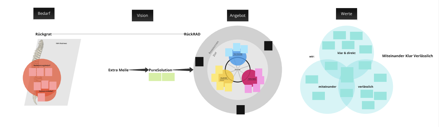 Für pure_solution stand eine klare Neupositionierung im Markt im Fokus. Das Unternehmen existiert seit über 25 Jahren und darf mehrere große Unternehmen Ihre Kunden nennen. Das neue Ziel war, mehr auf KMU zuzugehen, um in diesem Bereich weiter zu skalieren. Für dieNeupositionierung wurde eine firmeninterne Analyse durchgeführt, die zu Struktur- und Prozessänderungen führte. Um diesen Change mehr Ausdruck zu gewähren, wurde zudem ein Rebranding durchgeführt. Dieses Rebranding verdeutlicht visuell wie inhaltlich, dass es sich um ein etabliertes, seriöses IT-Unternehmen handelt, das über langjährige Erfahrung verfügt. Gleichzeitig sollte das neue Erscheinungsbild auch die jüngere Generation von Entscheidungsträgern – insbesondere Führungskräfte im Alter zwischen 30 und 40 Jahren – ansprechen und Vertrauen aufbauen.